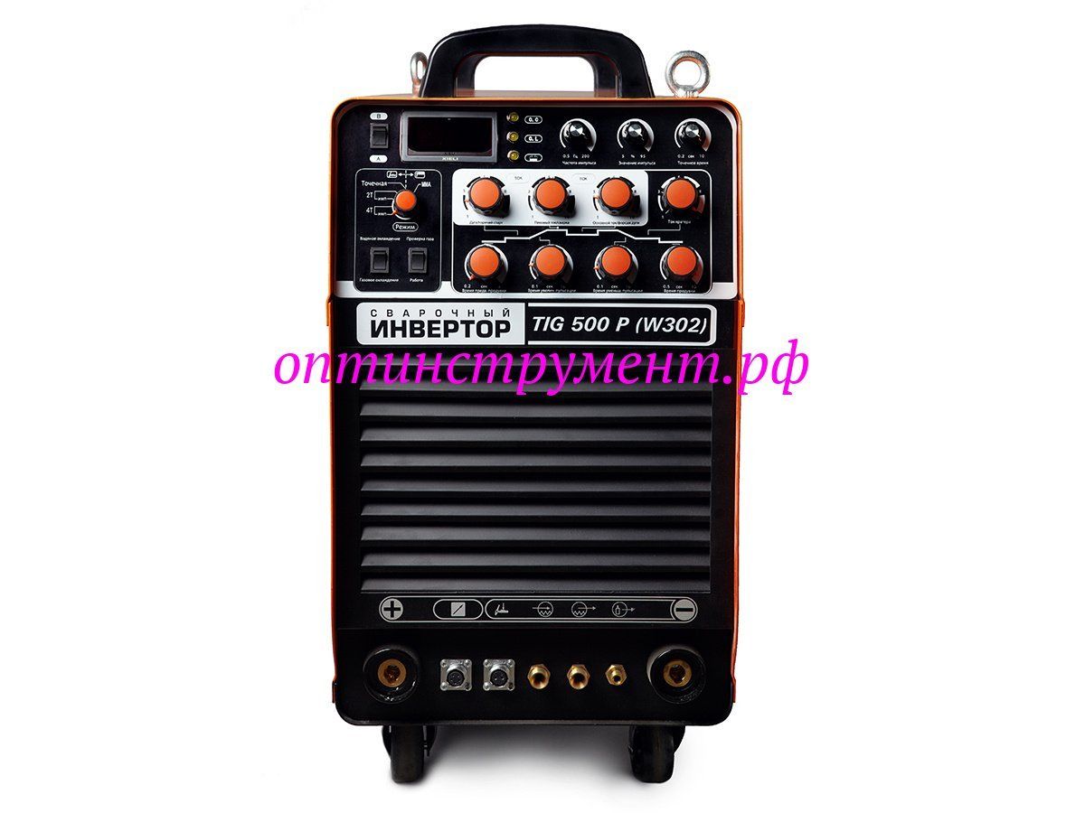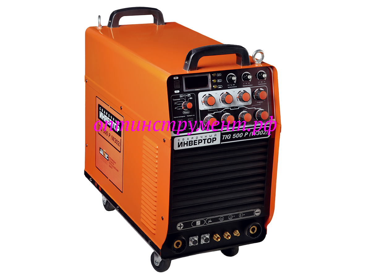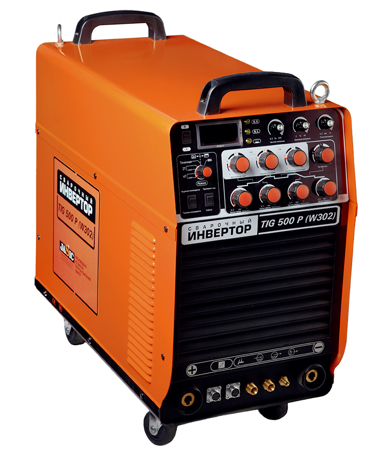 Аппарат серии STANDART TIG 500 P (W302) - промышленный сварочный инвертор для аргонодуговой сварки (TIG) с режимом импульсной сварки, ручной дуговой сварки покрытым электродом (ММА), оборудован цифровыми индикаторами параметров сварки и большим набором ручных регулировок.