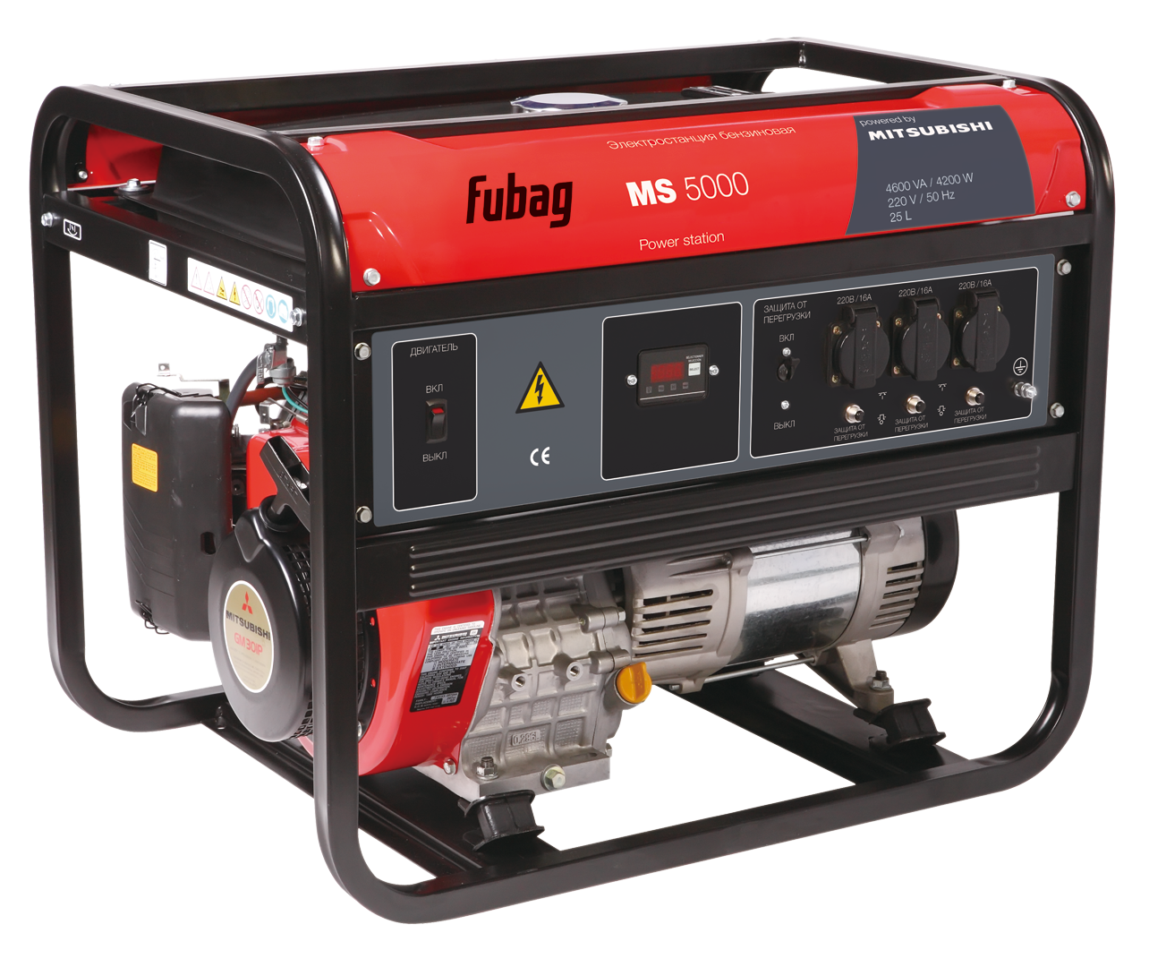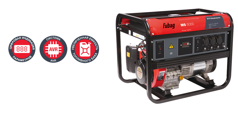 Экономичная электростанция, с мощным и надёжным бензиновым двигателем Mitsubishi, номинальной мощностью 4,2 кВт., рассчитана на работу с высокими нагрузками без дозаправки в течение длительного времени. Имеет достаточную мощность, чтобы с успехом использоваться в качестве аварийного источника энергоснабжения загородного дома или для питания большинства типов электроинструмента на стройплощадке.