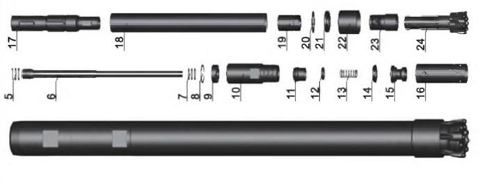 - Внутренняя трубка подвергается износу, но ее замена без труда выполняется через верхнюю часть пневмоударника.