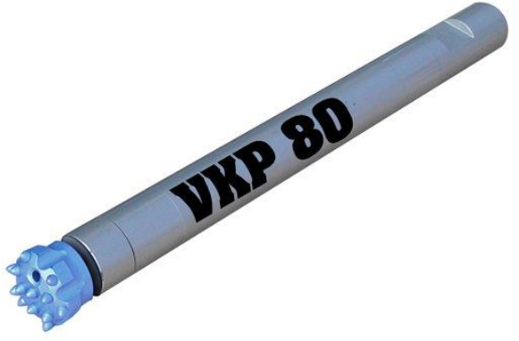 Пневмоударник погружной Permon VKP 80 предназначен для ударно-вращательного бурения в породах и рудах с коэффициентом крепости f= 6-20 по шкале Протодьяконова и может применяться для бурения взрывных скважин и при геологоразведочных работах. Рекомендуемый диаметр скважины 85 и 95 мм. Погружной пневмоударник Permon VKP 80 в комплекте с буровой коронкой является рабочим органом бурового станка.