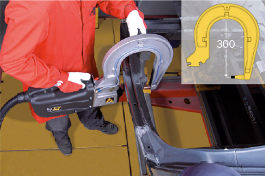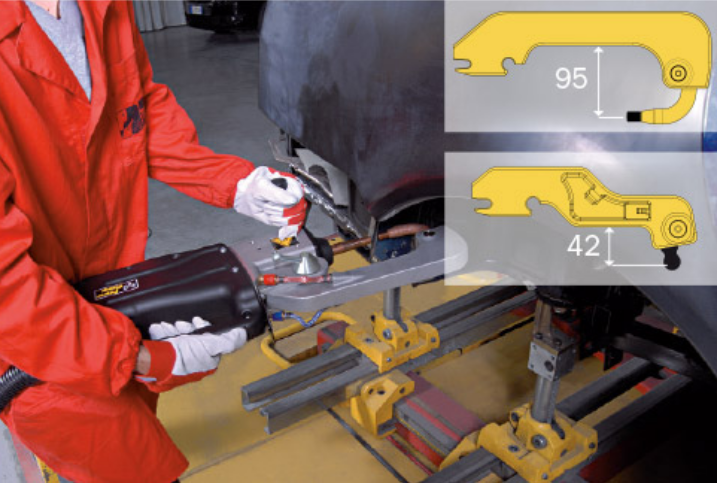 Технология POWER CLAMP позволяет осуществлять точечную сварку с использованием более высокого тока, снижая при этом потребляемое электричество, использовать намного более длинные (5м) и легкие кабели, упрощая выполнение работ и расширяя рабочую зону, сохраняя при этом магнитные поля вокруг кабелей на минимальном уровне. Автоматическое управление давлением позволяет оптимально регулировать силу, прилагаемую к электродам зажима. Аппарат укомплектован зажимом, охлаждаемым водой и тележкой.