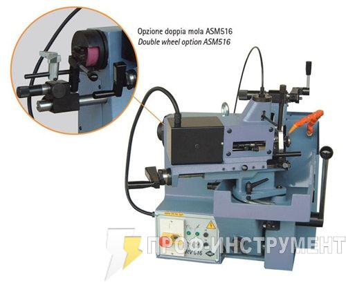Опции: дополнительный шлифовальный круг (ASM516) для обработки торца штока и снятия фаски без использования основного круга и устройство для регулировки скорости вращения (VGV516) под все диаметры головок клапанов.