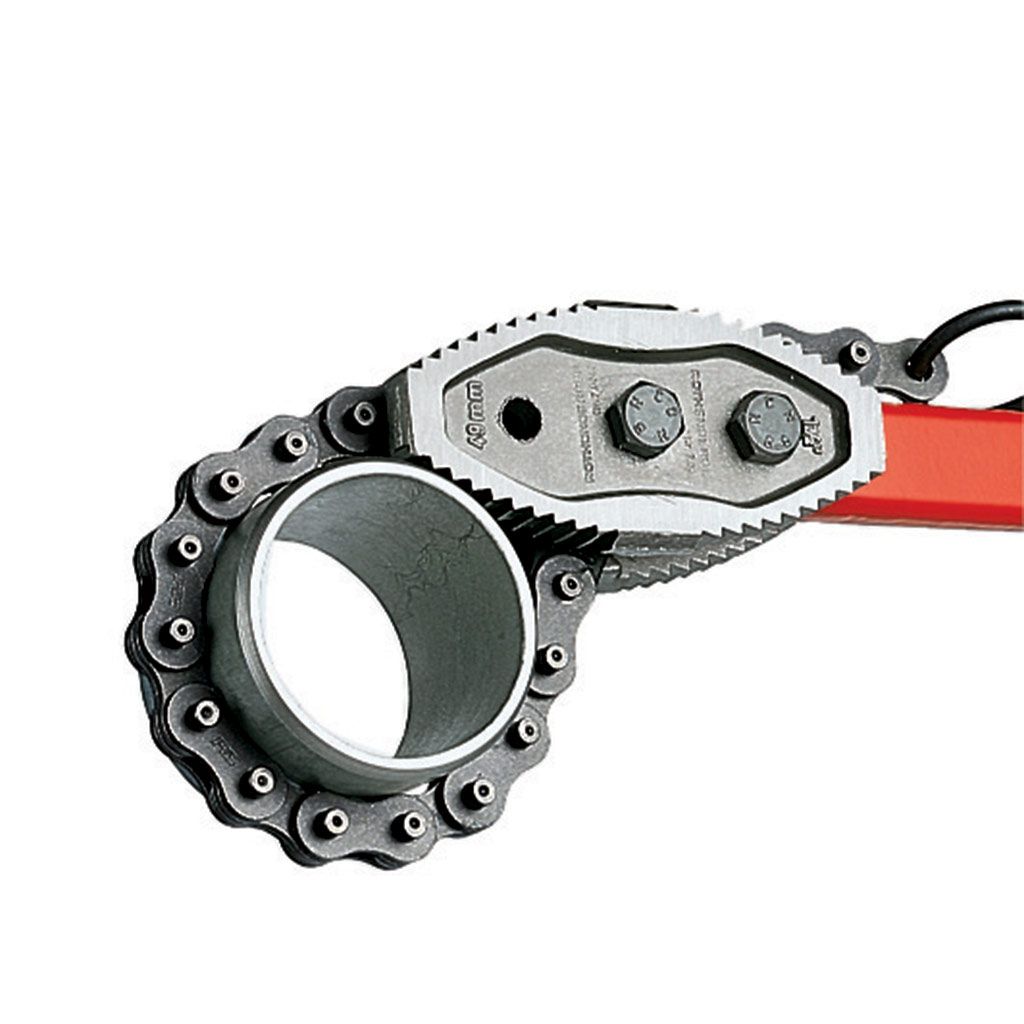 Цепной трубный ключ Rothenberger HEAVY DUTY 70243 представляет собой специализированный ручной инструмент для захвата заготовок при монтаже трубных систем. Головка ключа с обеих сторон оснащена зубьями, что позволяет работать по принципу трещотки (правый и левый ход).